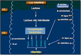 Figura 3- Representação esquemática da ação das bactérias sobre as dissacaridases, em especial, sobre a lactase.